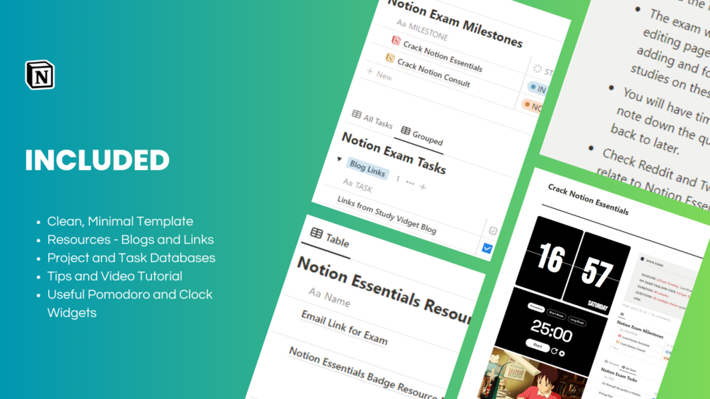 - Tasks Database: Stay organized with a detailed study plan. Set deadlines, track your progress, and ensure you cover all exam topics.